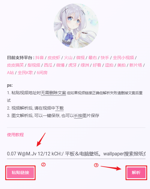 1. 打开所支持平台进行复制视频或图文的分享链接到输入框。
