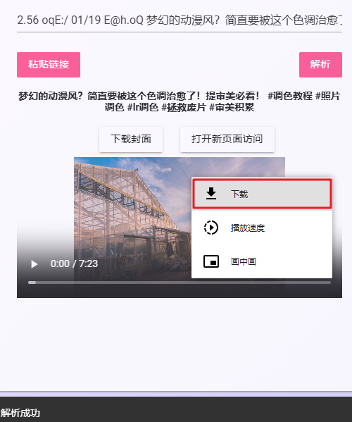 4. 若解析失败请检查链接是否正确,并重新解析。